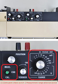 (3) Set the [MEAS/CHK/CAL] changeover switch to [CAL]. If a pen is moved by the built-in power source for calibration and it stops at the position of full-scale (100%). This is normal.